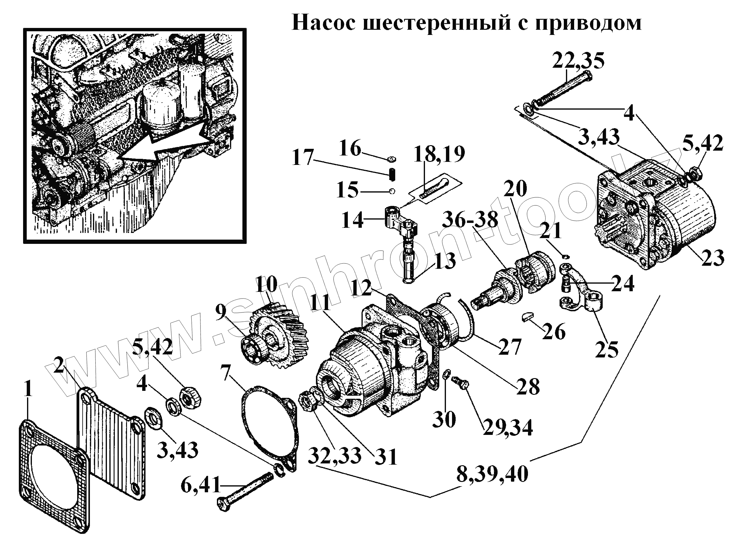 Каталог запасных частей к технике: ВгТЗ ВТ-100Д. Насос шестеренный с приводом