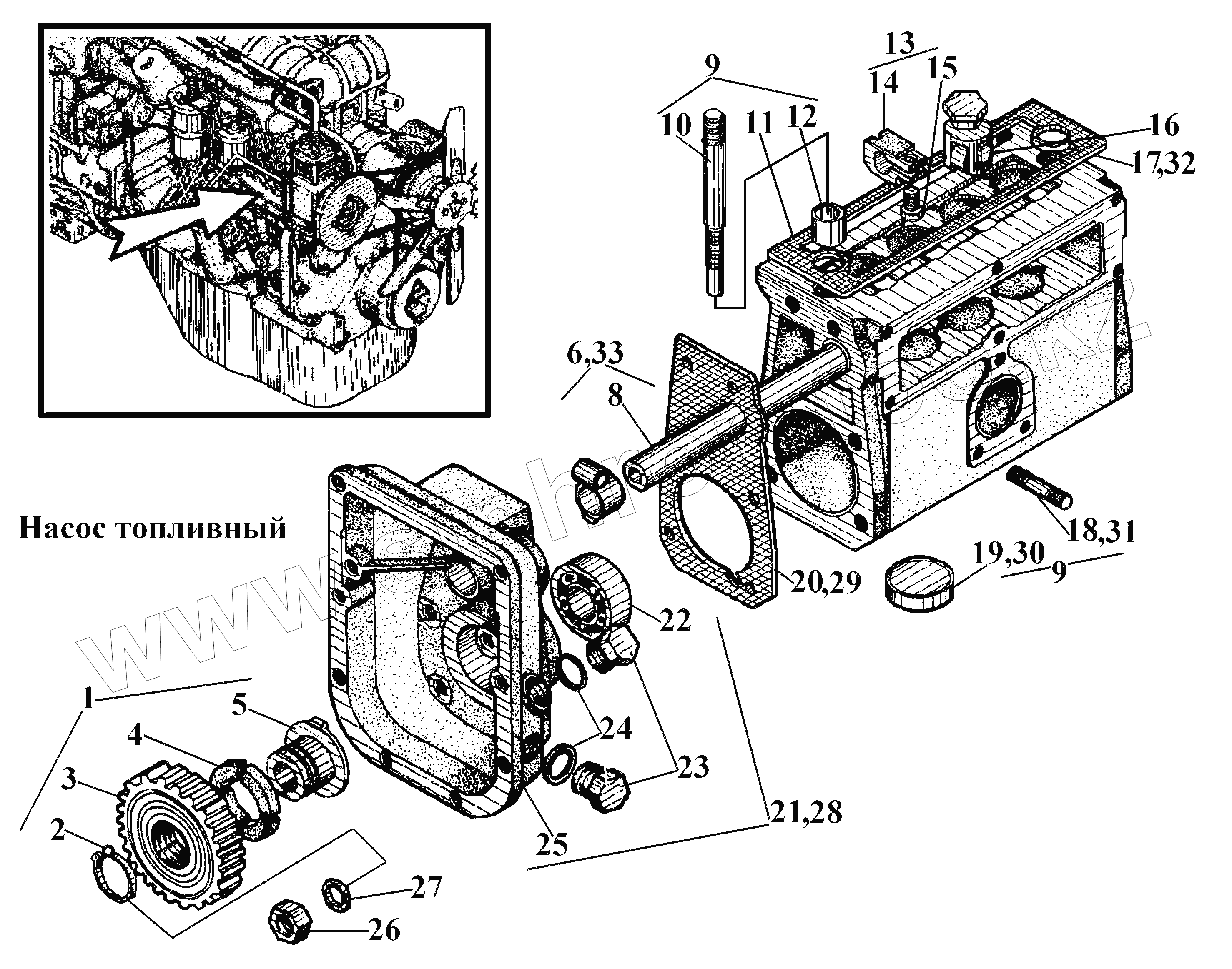 Каталог запасных частей к технике: ВгТЗ ВТ-100Д. Насос топливный (1)
