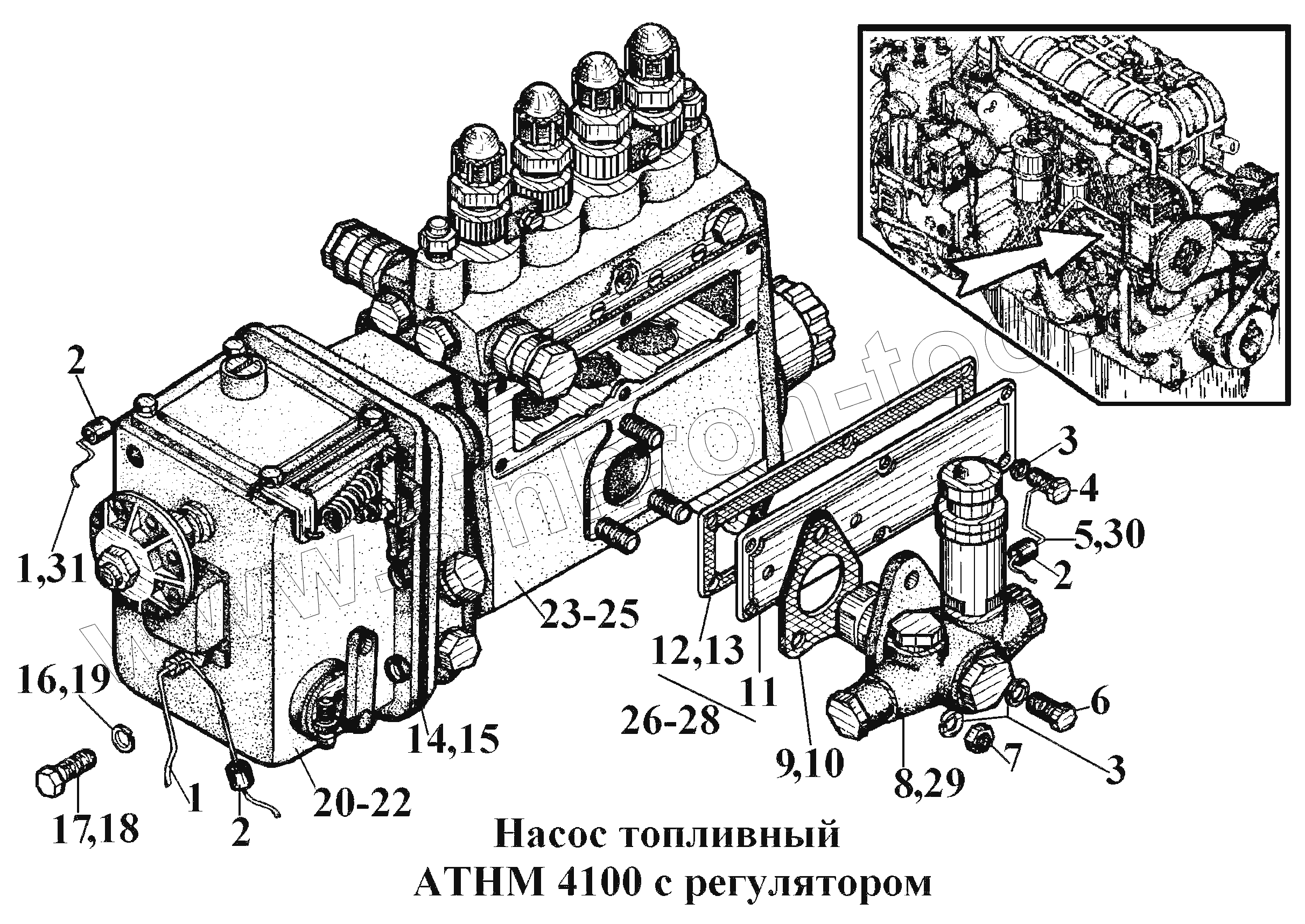 Каталог запасных частей к технике: ВгТЗ ВТ-100Д. Насос топливный АТНМ 4100 с регулятором