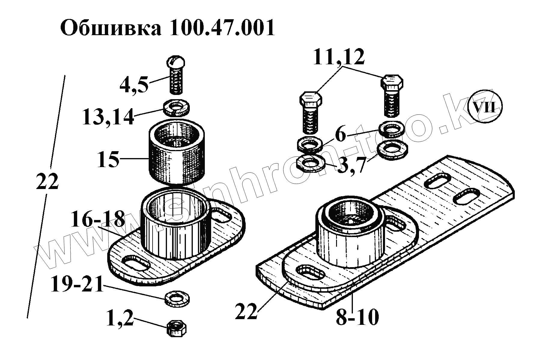 Каталог запасных частей к технике: ВгТЗ ВТ-100Д. Обшивка 100.47.001 (8)