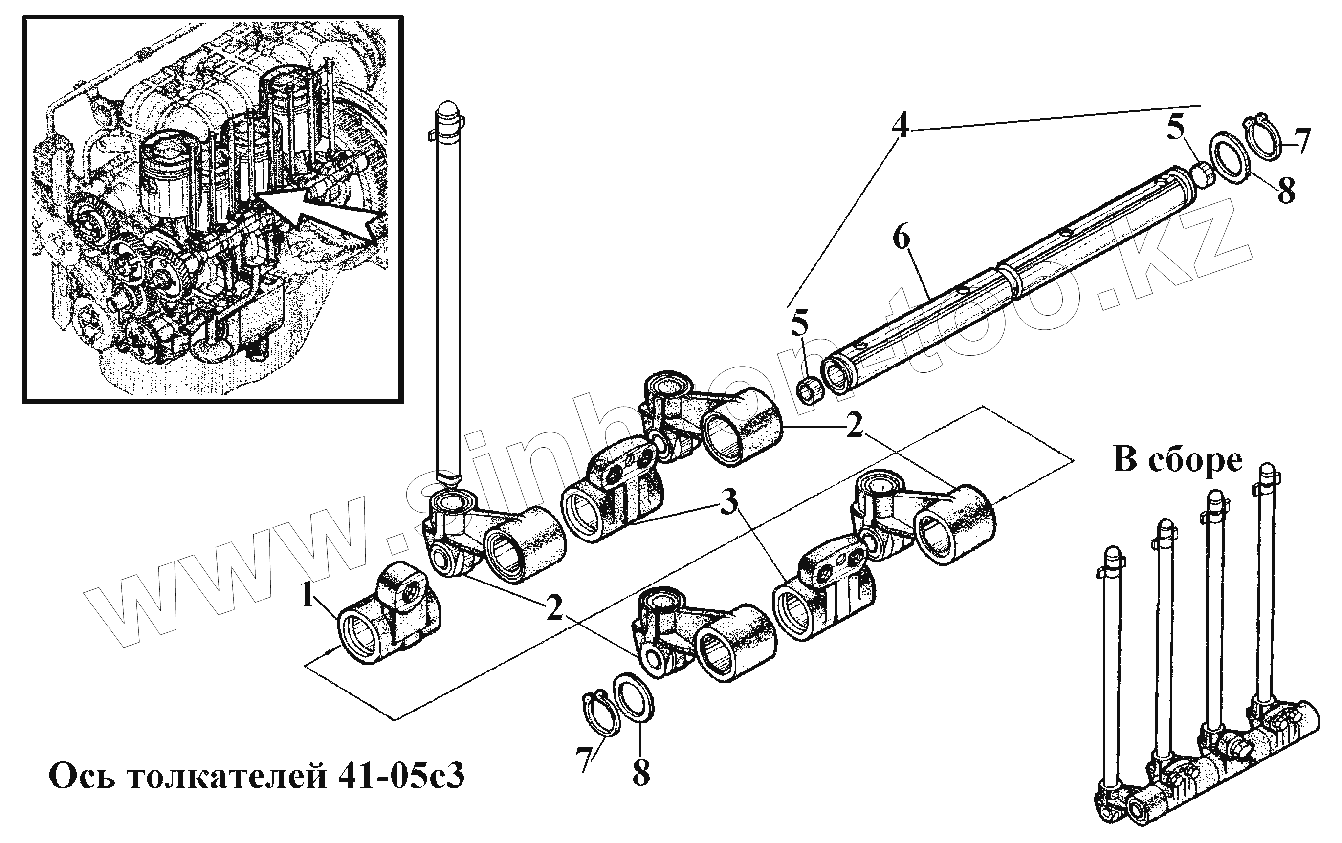 Каталог запасных частей к технике: ВгТЗ ВТ-100Д. Ось толкателей 41-05с3