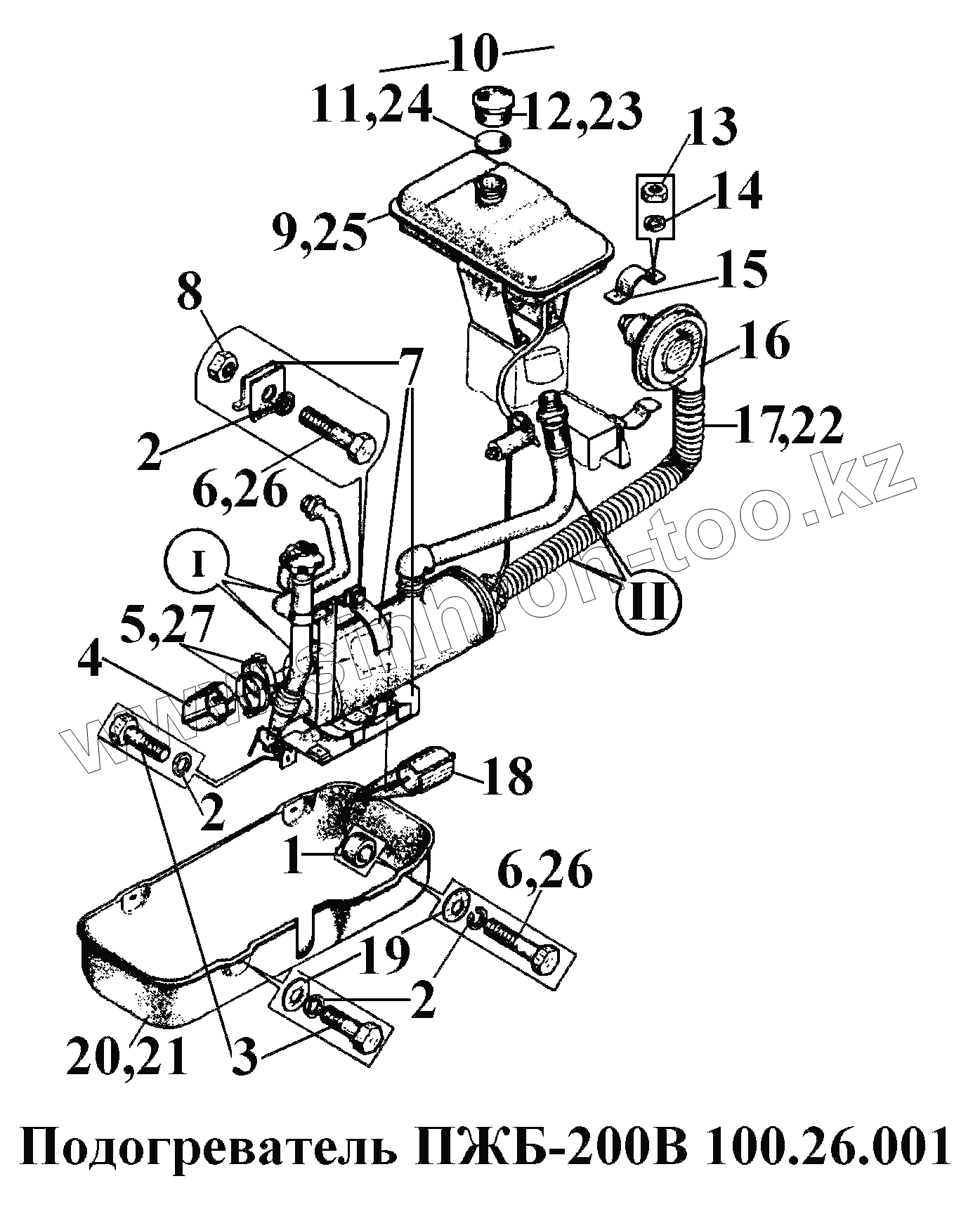 Каталог запасных частей к технике: ВгТЗ ВТ-100Д. Подогреватель ПЖБ-200В 100.26.001 (1)