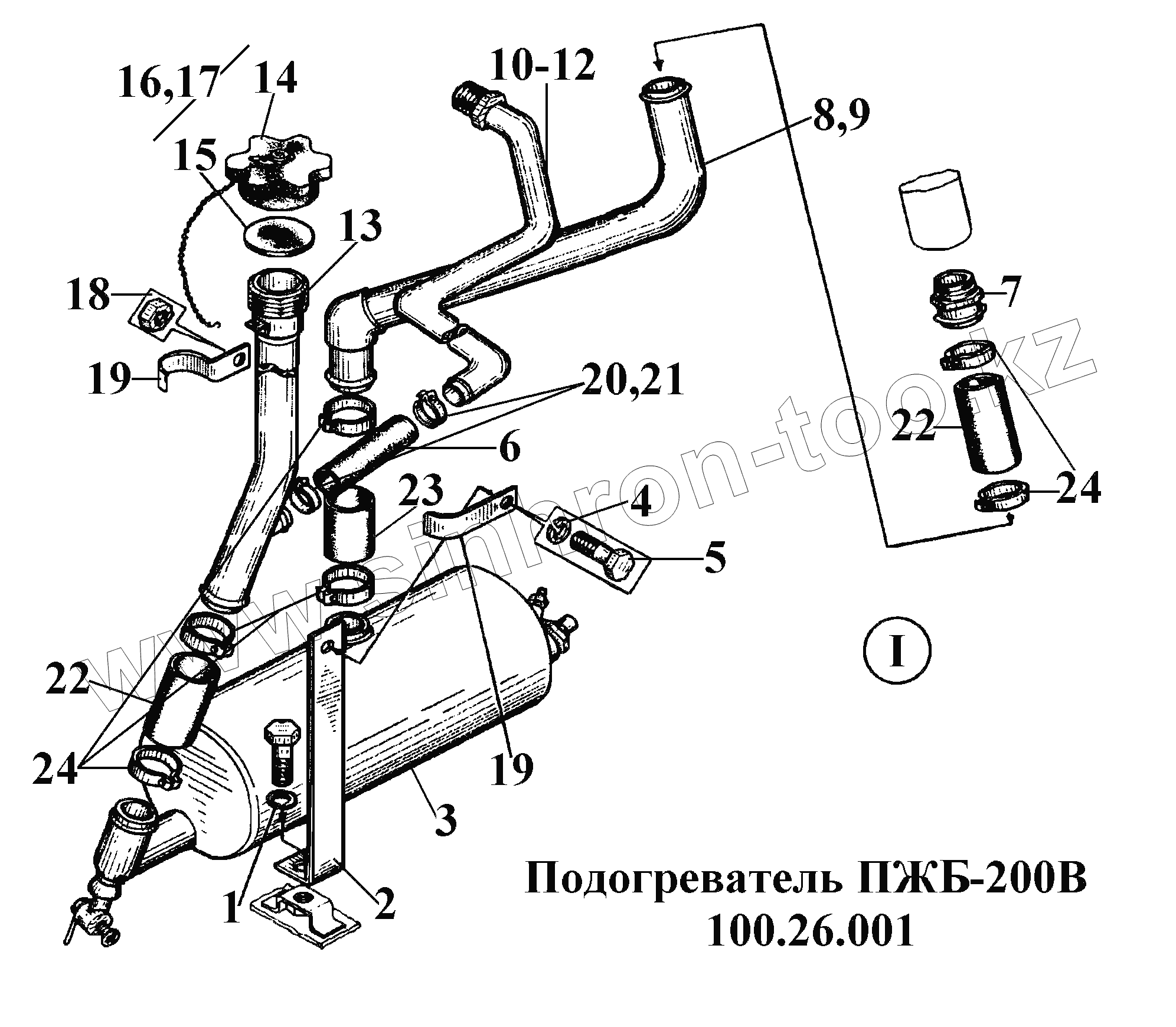 Каталог запасных частей к технике: ВгТЗ ВТ-100Д. Подогреватель ПЖБ-200В 100.26.001 (2)
