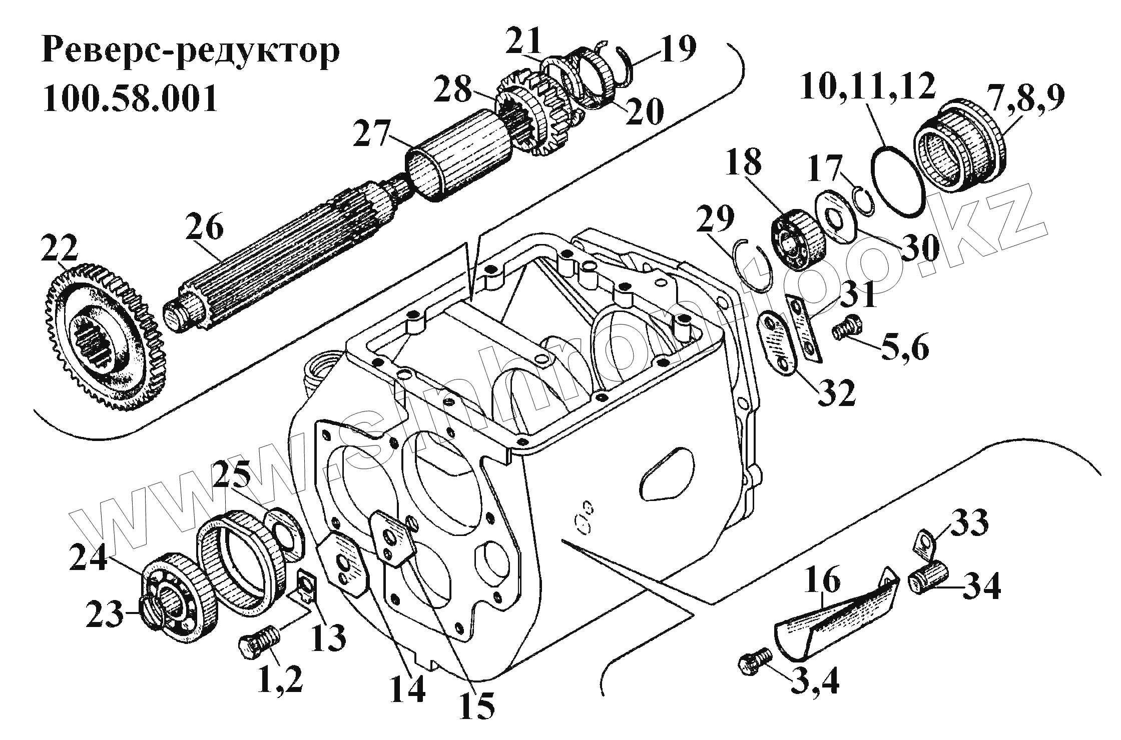 Каталог запасных частей к технике: ВгТЗ ВТ-100Д. Реверс-редуктор 100.58.001 (4)
