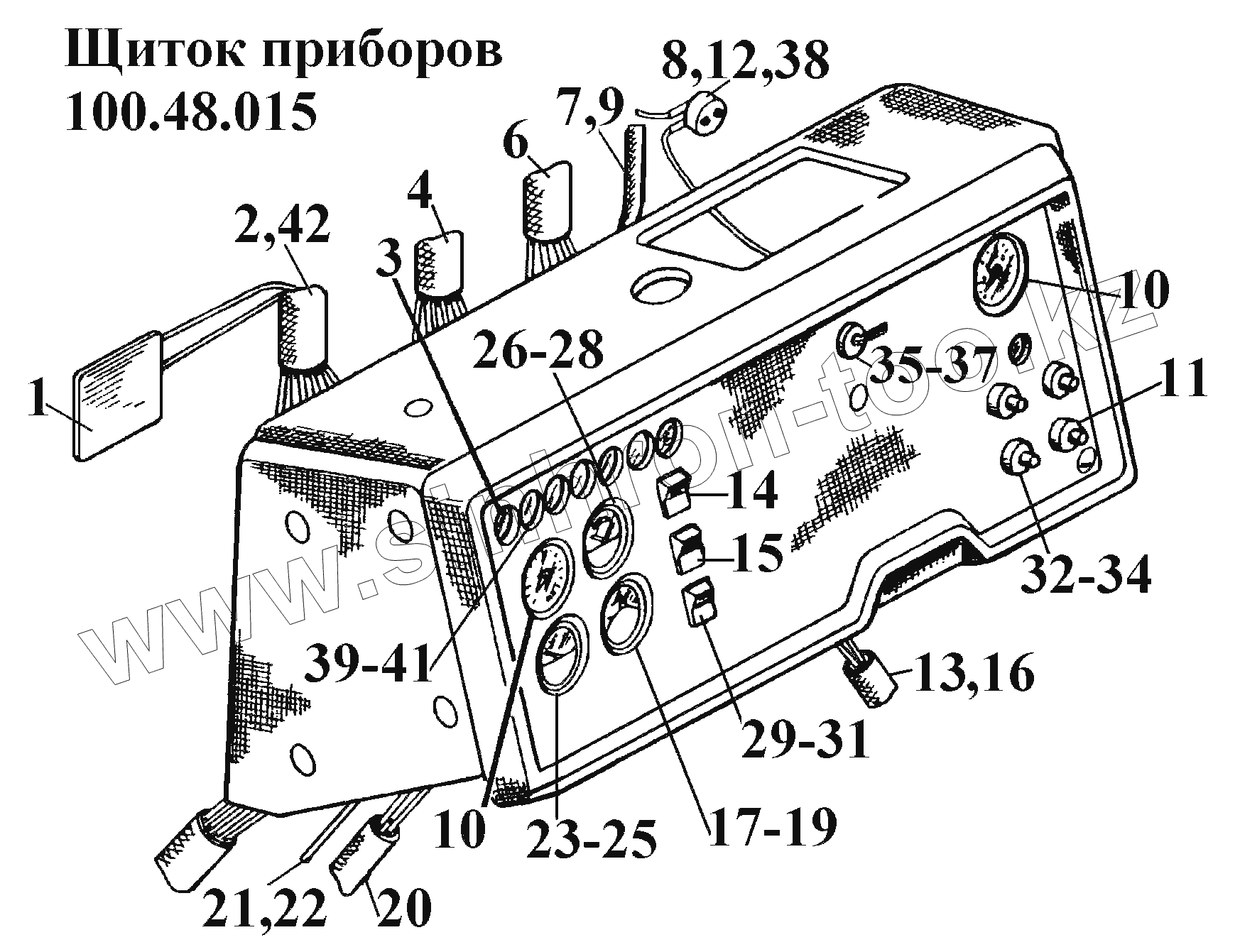 Каталог запасных частей к технике: ВгТЗ ВТ-100Д. Щиток приборов 100.48.015