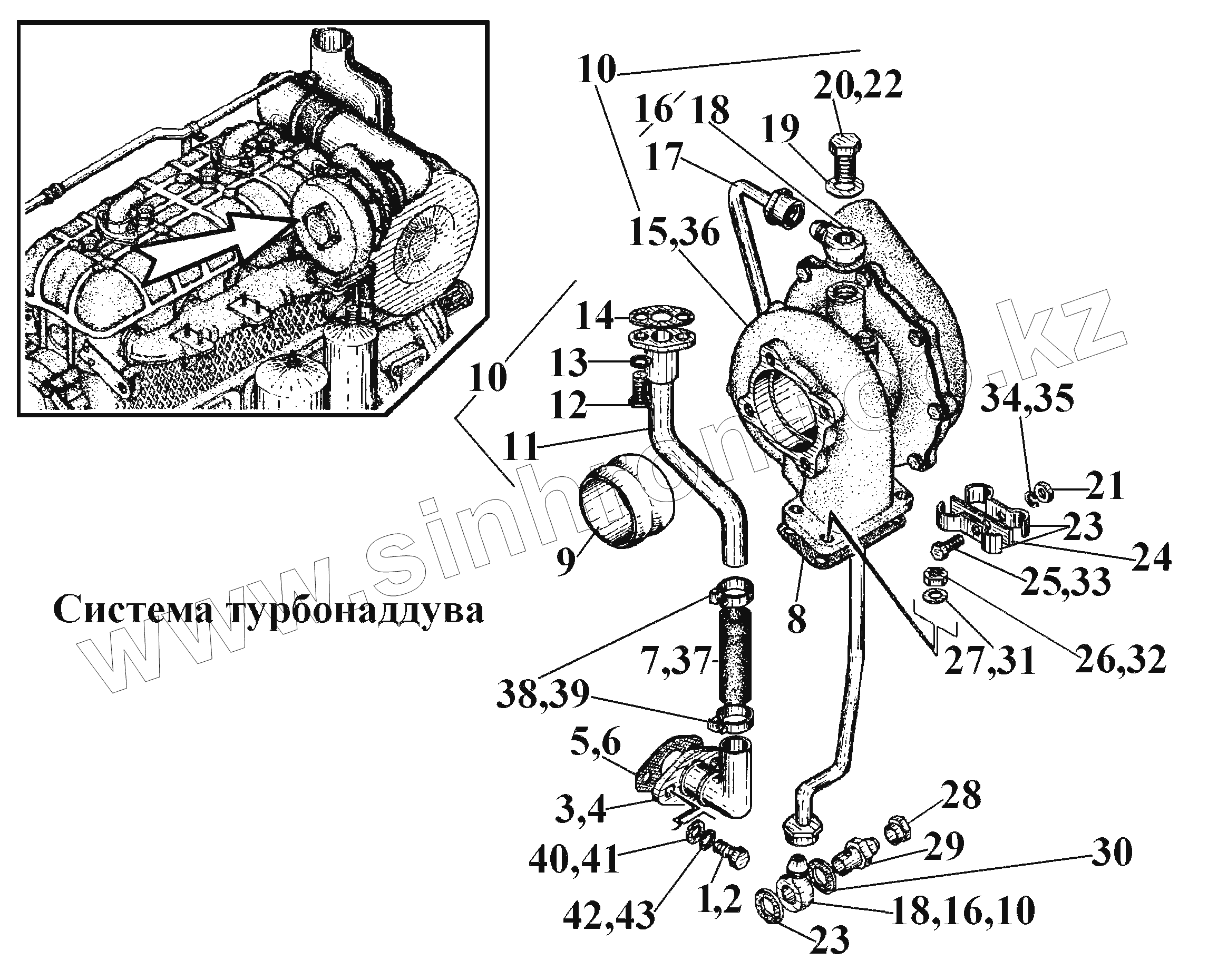 Каталог запасных частей к технике: ВгТЗ ВТ-100Д. Система турбонаддува