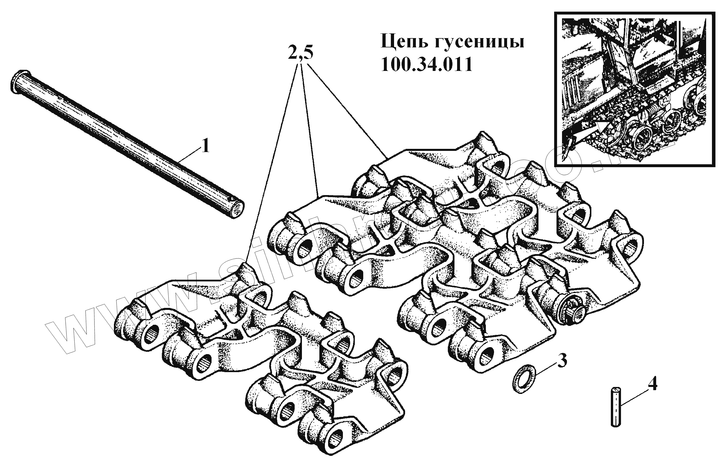 Каталог запасных частей к технике: ВгТЗ ВТ-100Д. Цепь гусеницы 100.34.011