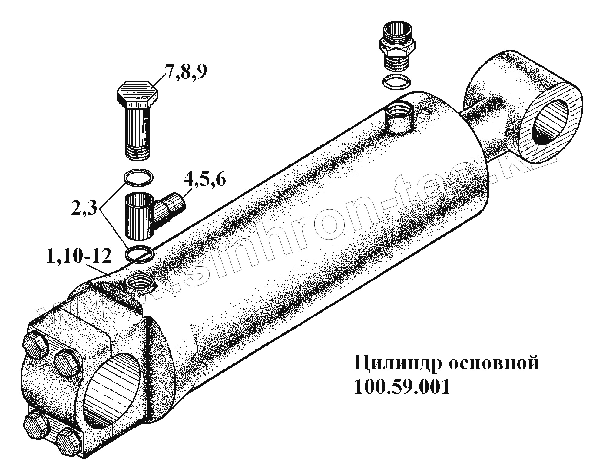 Каталог запасных частей к технике: ВгТЗ ВТ-100Д. Цилиндр основной 100.59.001