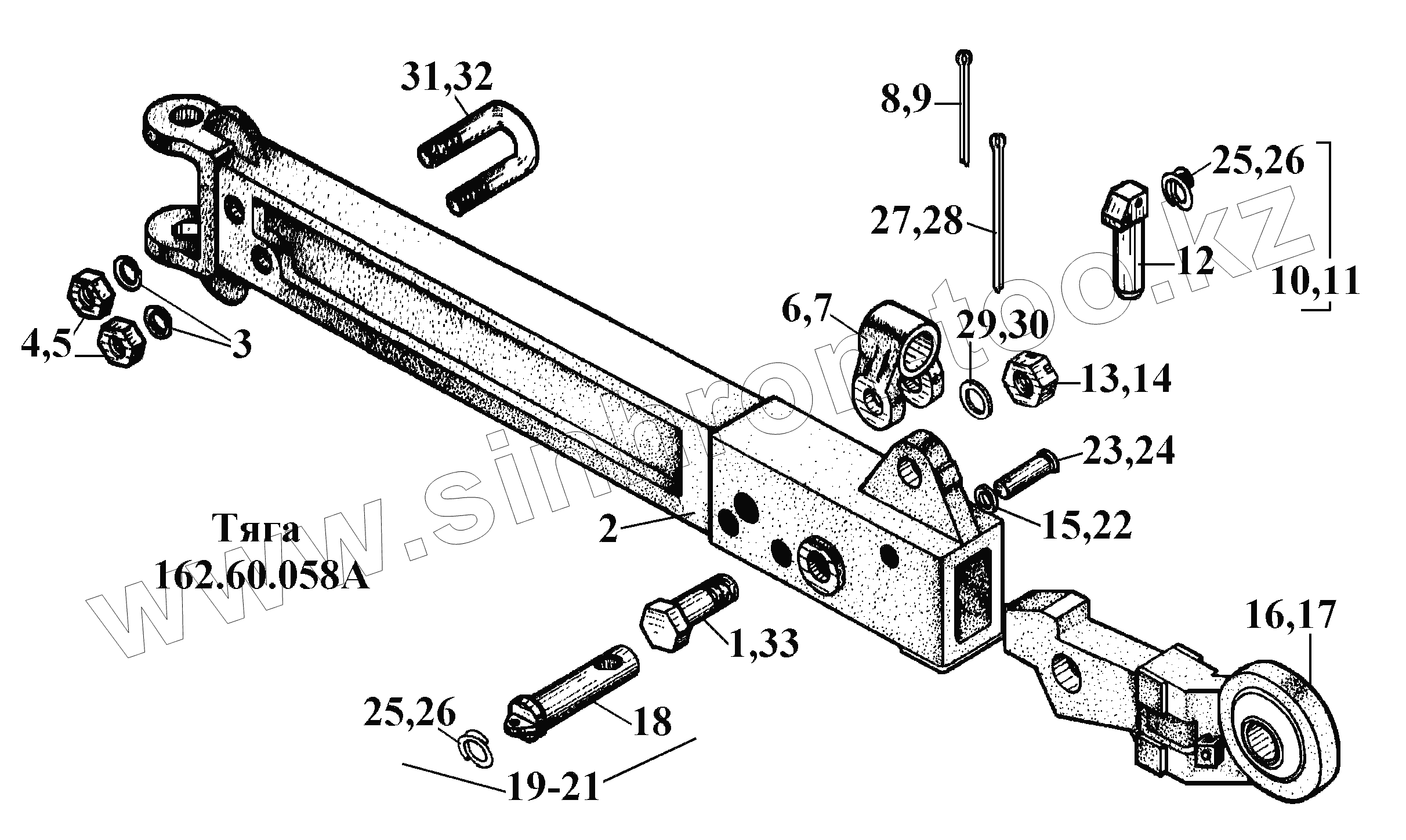 Каталог запасных частей к технике: ВгТЗ ВТ-100Д. Тяга 162.60.058А