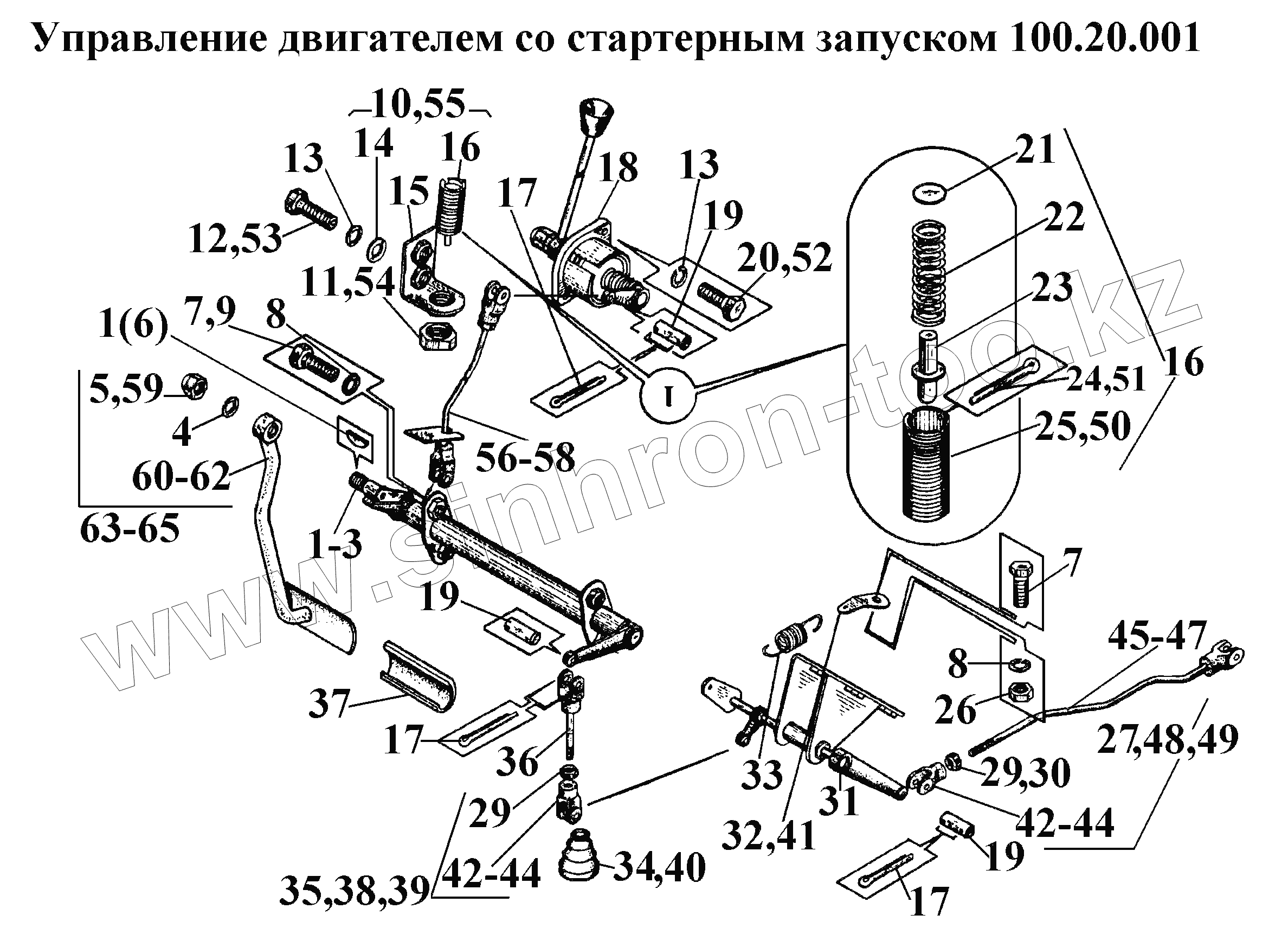 Каталог запасных частей к технике: ВгТЗ ВТ-100Д. Управление двигателем со стартерным запуском 100.20.001