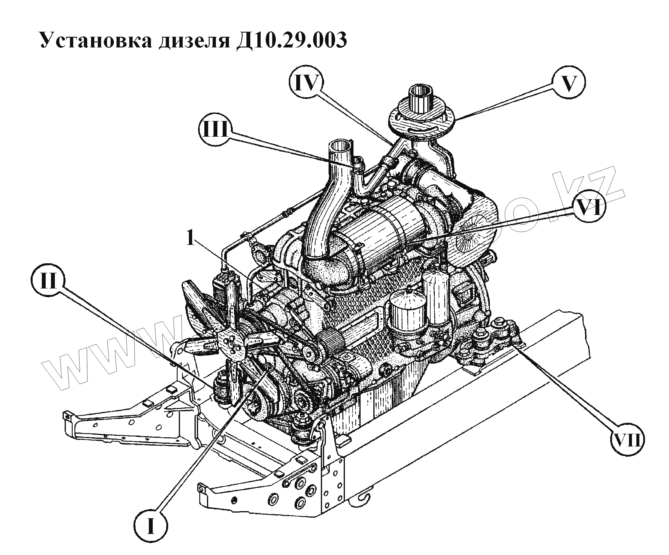 Каталог запасных частей к технике: ВгТЗ ВТ-100Д. Установка дизеля Д10.29.003 (1)