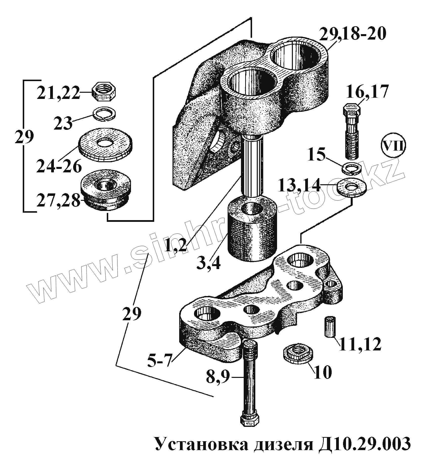Каталог запасных частей к технике: ВгТЗ ВТ-100Д. Установка дизеля Д10.29.003 (6)