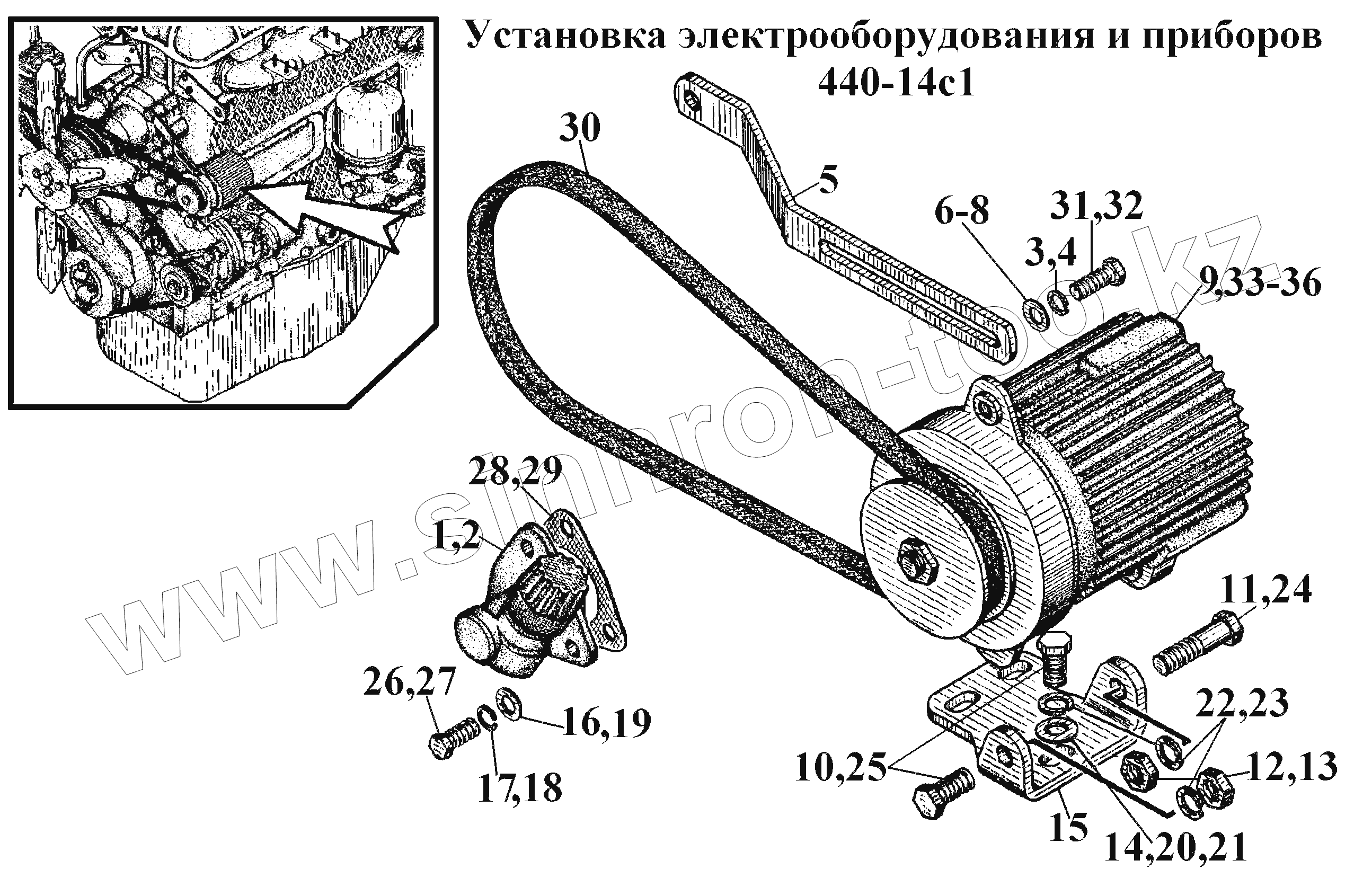 Каталог запасных частей к технике: ВгТЗ ВТ-100Д. Установка электрооборудования и приборов 440-14с1
