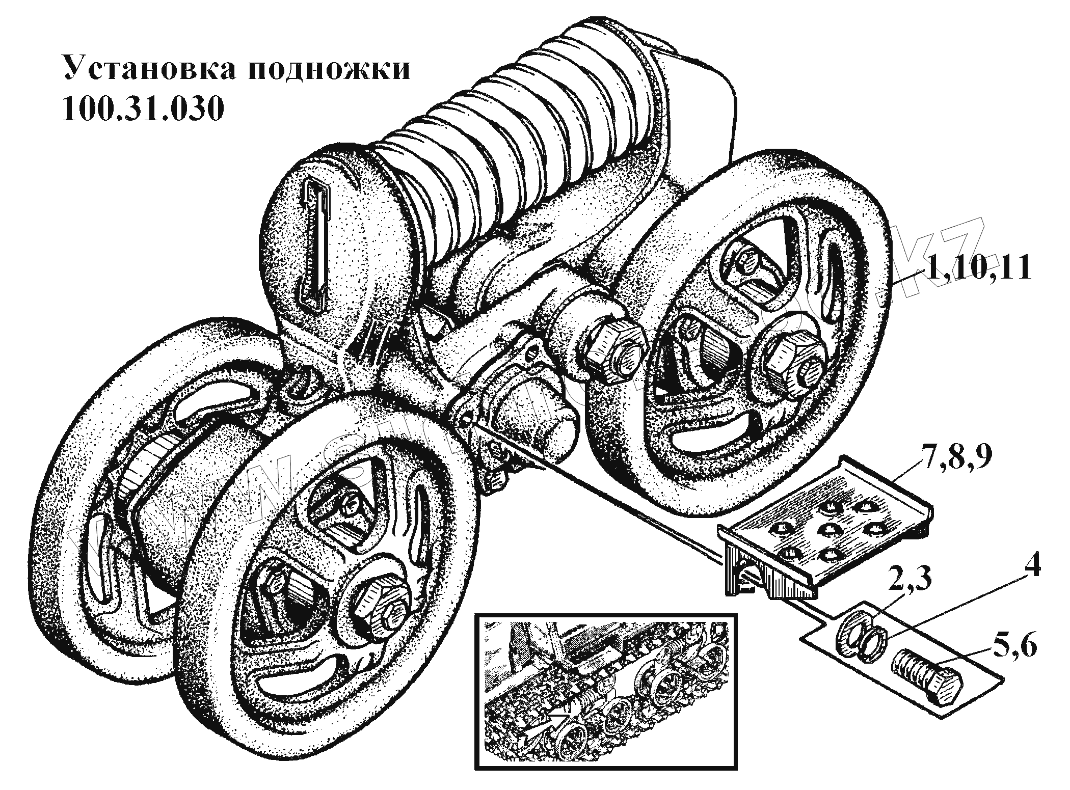 Каталог запасных частей к технике: ВгТЗ ВТ-100Д. Установка подножки 100.31.030