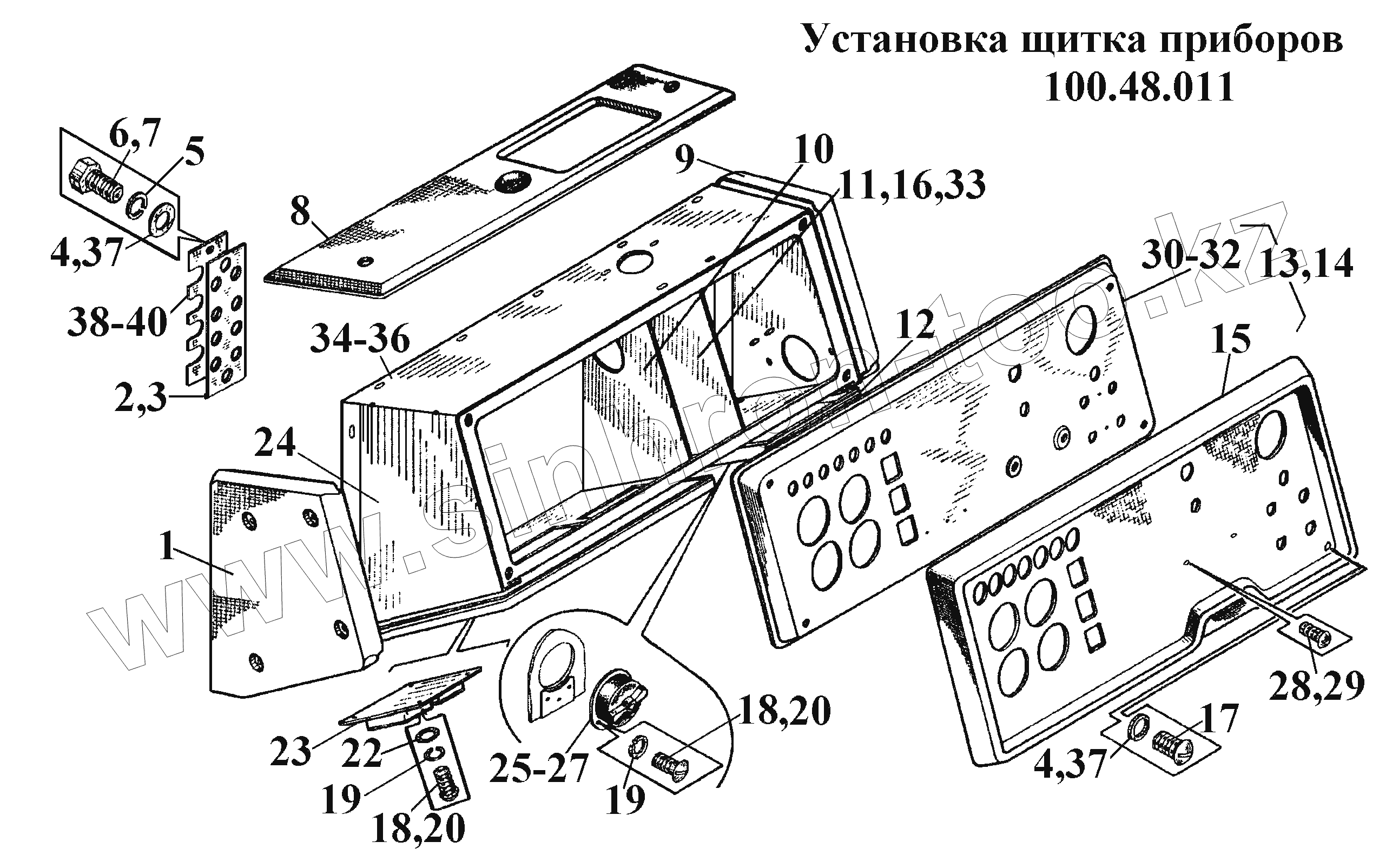 Каталог запасных частей к технике: ВгТЗ ВТ-100Д. Установка щитка приборов 100.48.011