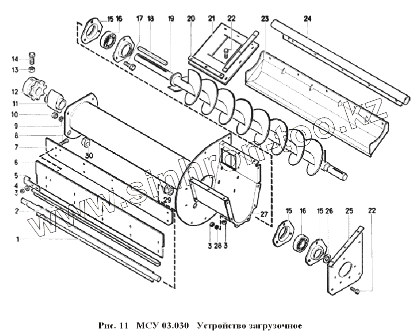 Каталог запасных частей к технике: Воронежсельмаш МС-4,5. МСУ 03.030 Устройство загрузочное