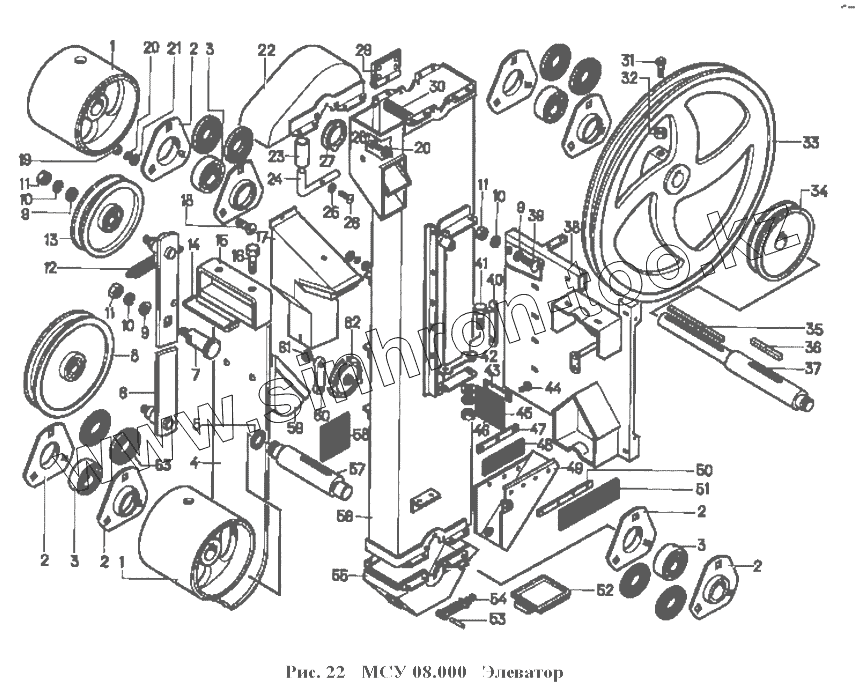 Каталог запасных частей к технике: Воронежсельмаш МС-4,5. МСУ 08.000 Элеватор