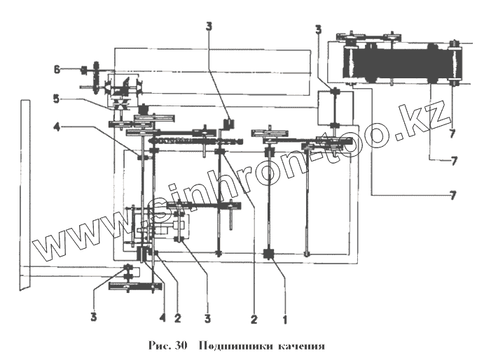 Каталог запасных частей к технике: Воронежсельмаш МС-4,5. Схема расположения подшипников