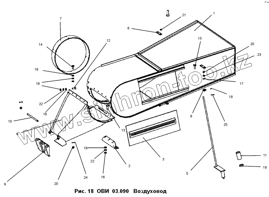 Каталог запасных частей к технике: Воронежсельмаш ОВС-25. ОВИ 03.090 Воздуховод