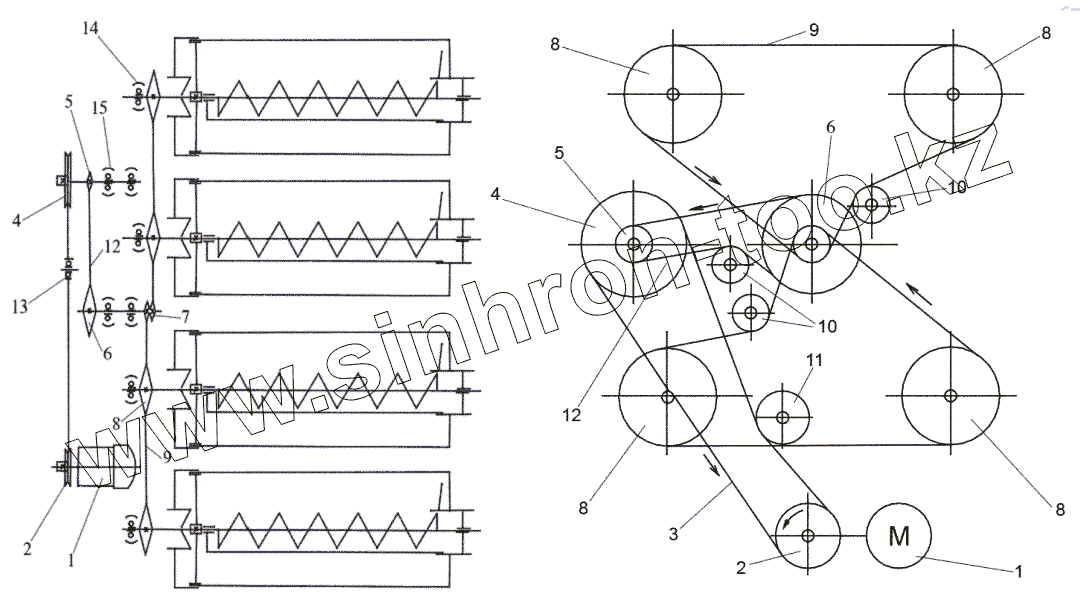Каталог запасных частей к технике: Воронежсельмаш ПТ-600. Кинематическая схема