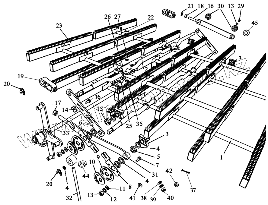 Каталог запасных частей к технике: Воронежсельмаш ЗВС-20А. Механизма очистки решет верхнего стана