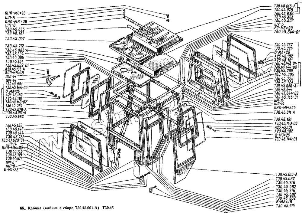Каталог запасных частей к технике: ВТЗ Т-25А. Кабина в сборе Т30.45.001-А