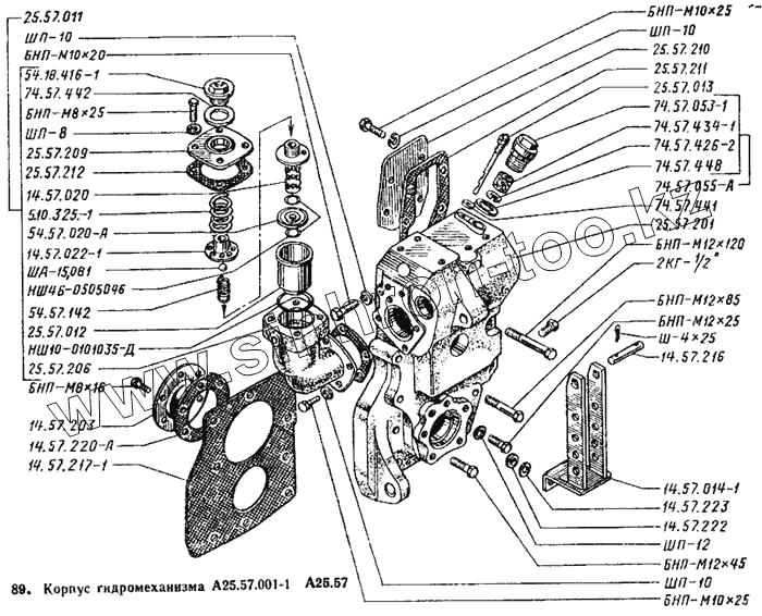 Каталог запасных частей к технике: ВТЗ Т-25А. Корпус гидромеханизма А25.57.001-1