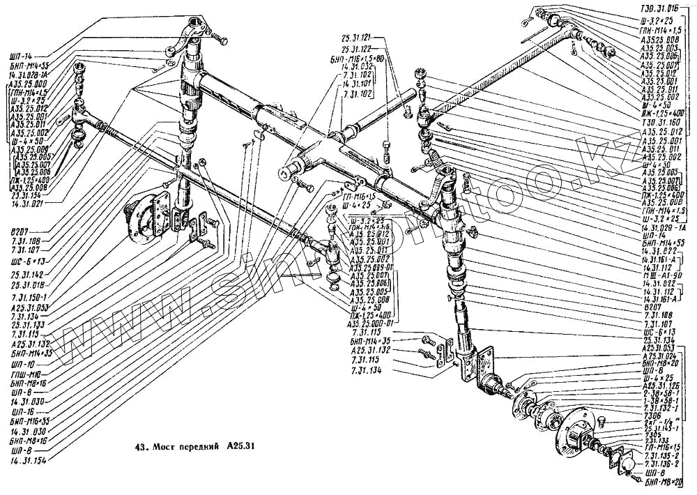Каталог запасных частей к технике: ВТЗ Т-25А. Мост передний