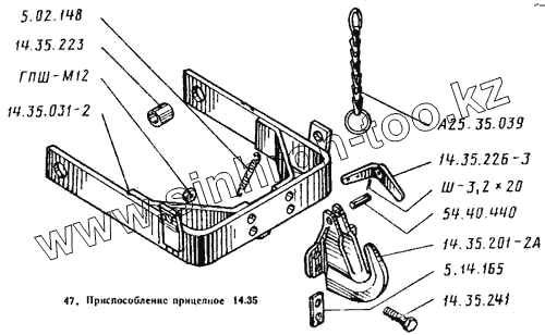 Каталог запасных частей к технике: ВТЗ Т-25А. Приспособление прицепное