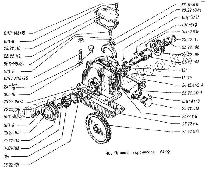 Каталог запасных частей к технике: ВТЗ Т-25А. Привод гидронасоса