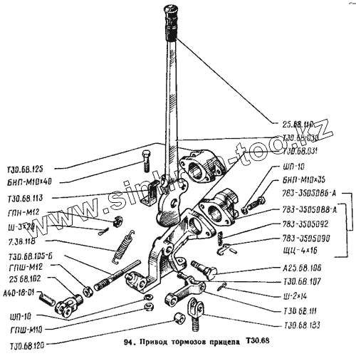 Каталог запасных частей к технике: ВТЗ Т-25А. Привод тормозов прицепа