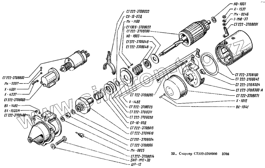 Каталог запасных частей к технике: ВТЗ Т-25А. Стартер СТ222 -3708000