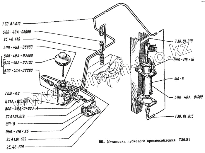 Каталог запасных частей к технике: ВТЗ Т-25А. Установка пускового приспособления