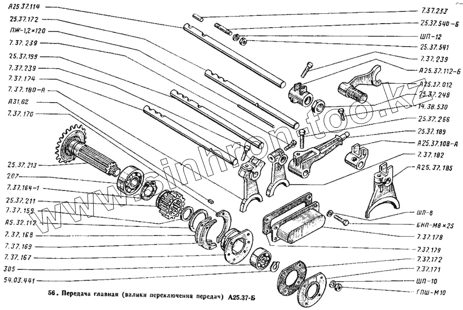 Каталог запасных частей к технике: ВТЗ Т-25А. Валики переключения передач
