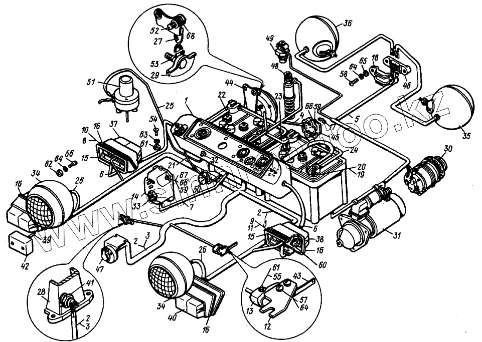 Каталог запасных частей к технике: ВТЗ Т-30A-80. Электрооборудование и приборы (схема)