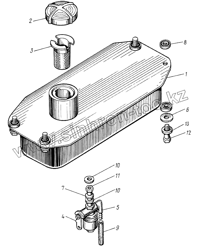 Каталог запасных частей к технике: ЮМЗ-6КЛ, (6КМ). Бак топливный пускового двигателя