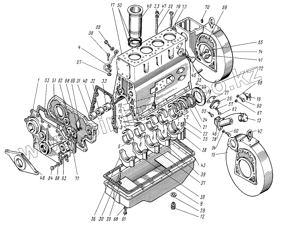 Каталог запасных частей к технике: ЮМЗ-6КЛ, (6КМ). Блок цилиндров