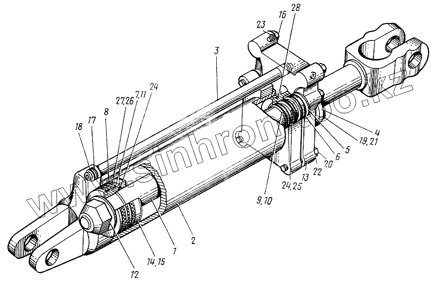 Каталог запасных частей к технике: ЮМЗ-6КЛ, (6КМ). Гидроцилиндр