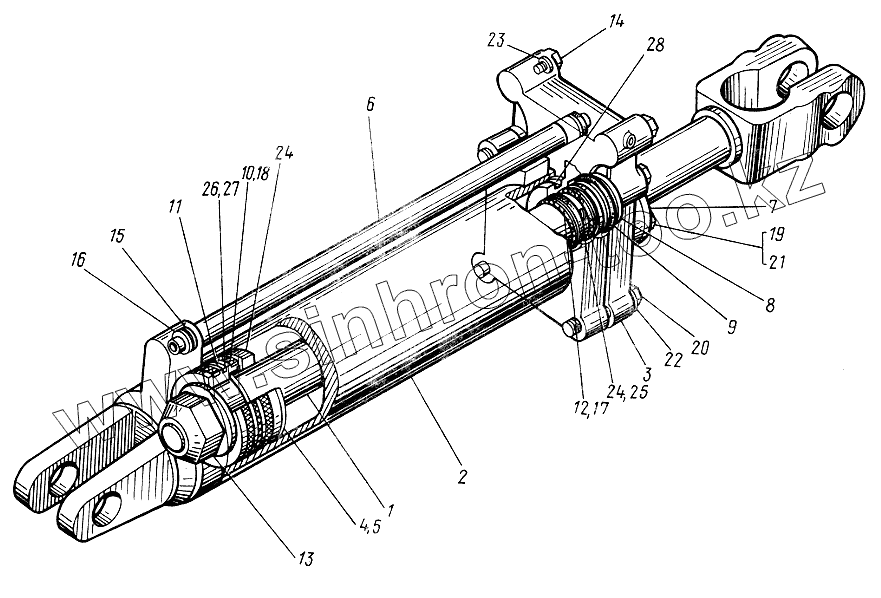 Каталог запасных частей к технике: ЮМЗ-6КЛ, (6КМ). Гидроцилиндр