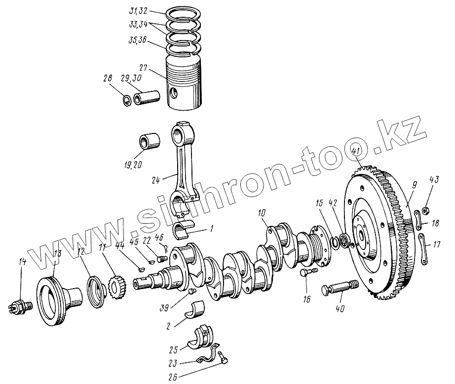Каталог запасных частей к технике: ЮМЗ-6КЛ, (6КМ). Механизм кривошипно-шатунный