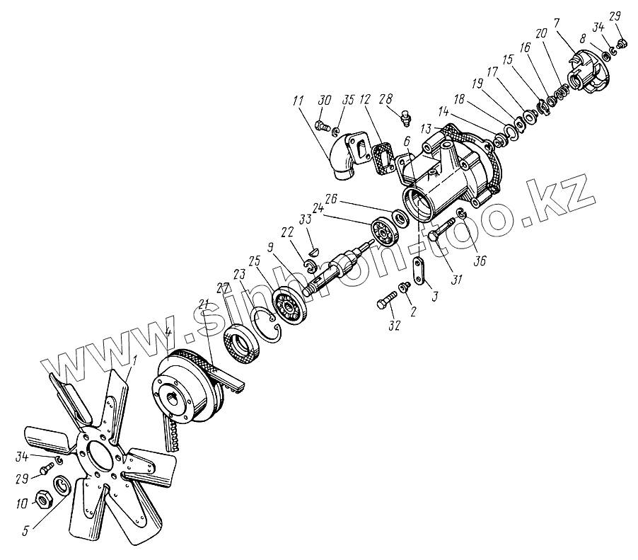 Каталог запасных частей к технике: ЮМЗ-6КЛ, (6КМ). Насос водяной и вентилятор