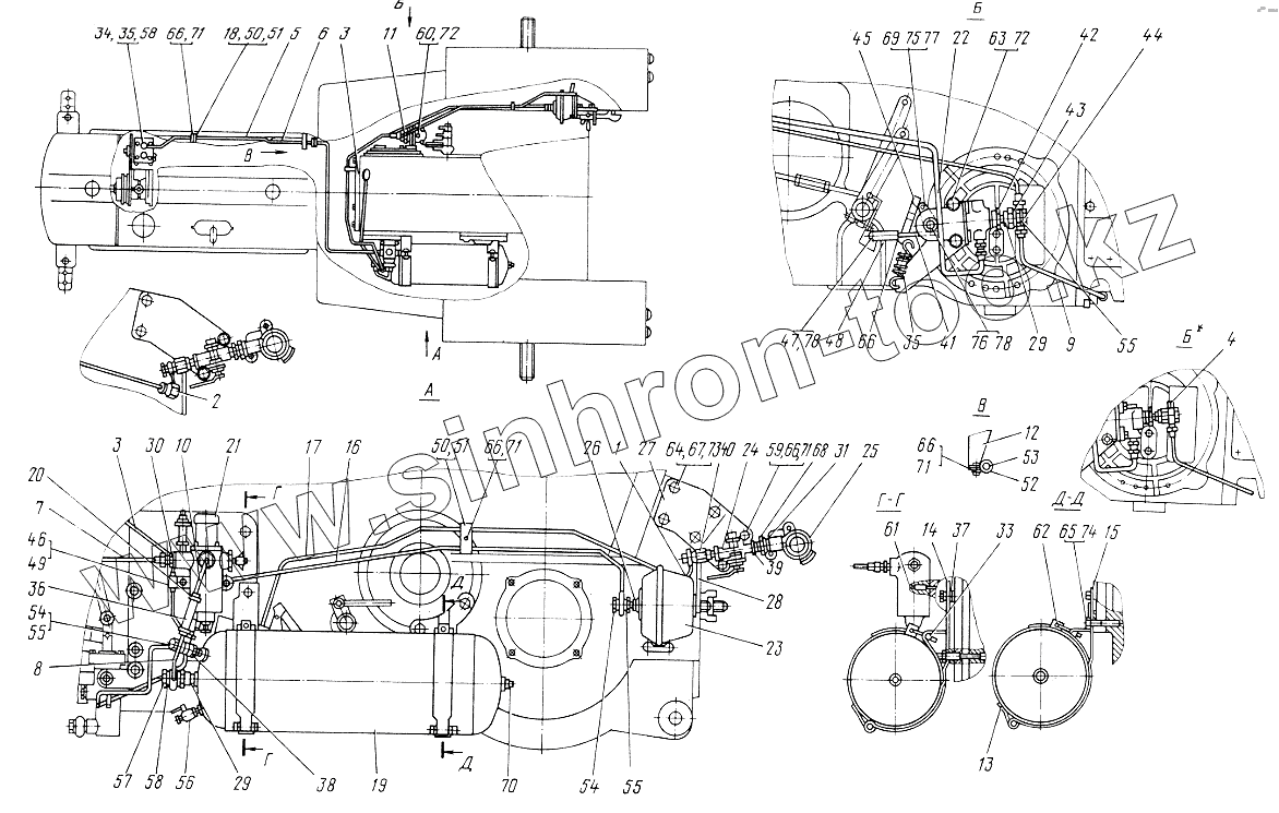 Каталог запасных частей к технике: ЮМЗ-6КЛ, (6КМ). Пневмопривод пневмо- и гидротормоза прицепа
