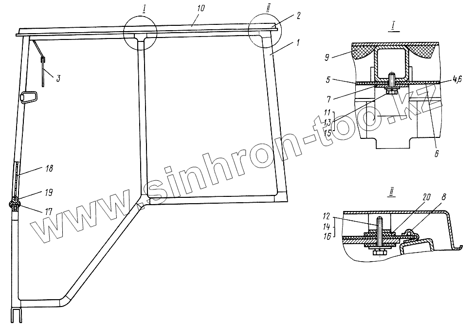 Кабина. Каркас. Рамка задняя. Крыша. Двери