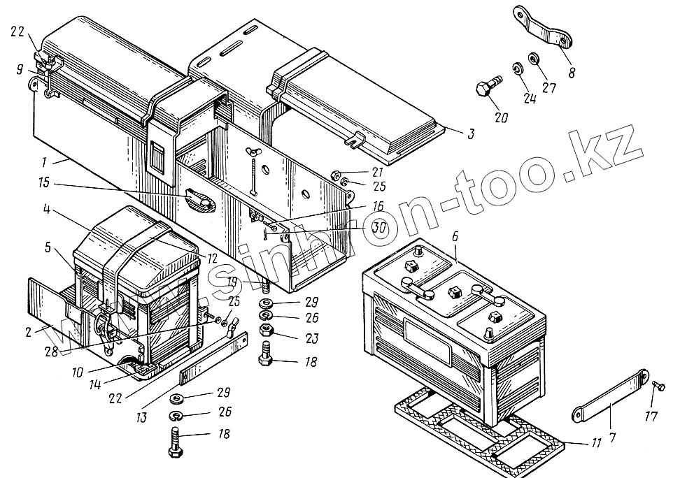 Каталог запасных частей к технике: ЮМЗ-6КЛ, (6КМ). Установка аккумуляторных батарей