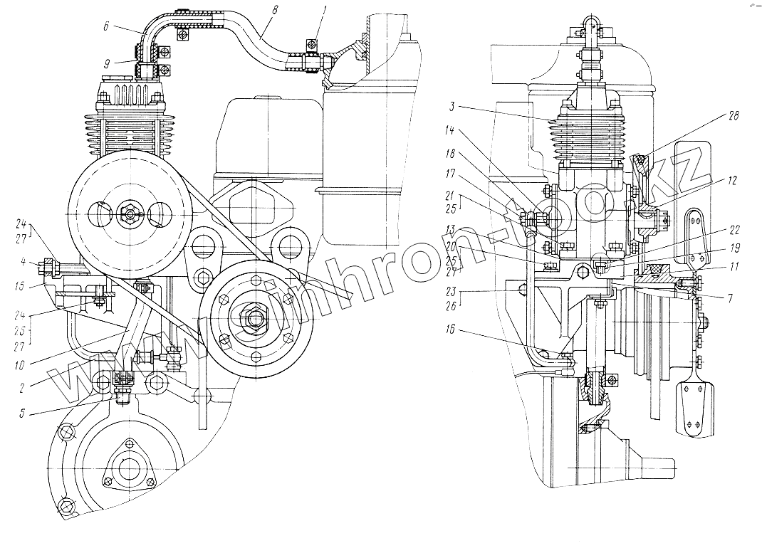 Каталог запасных частей к технике: ЮМЗ-6КЛ, (6КМ). Установка компрессора