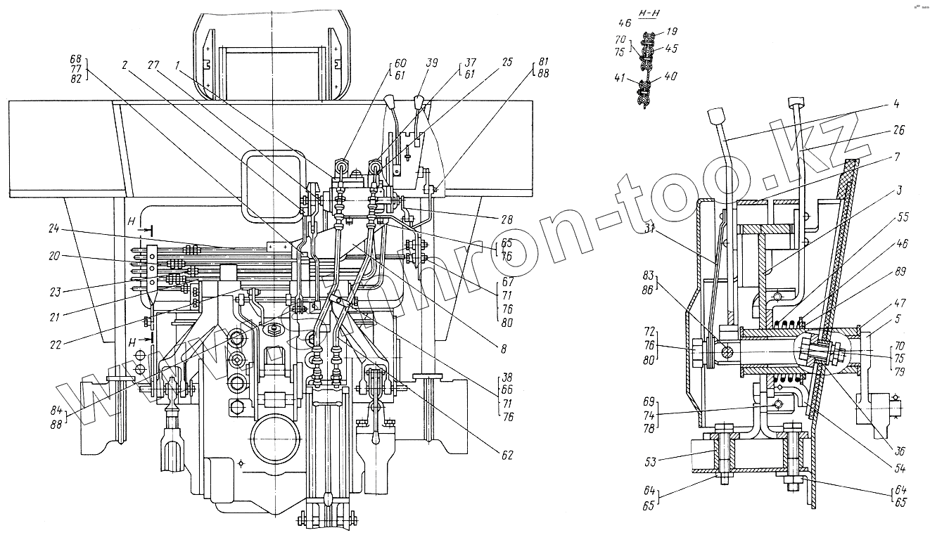 Каталог запасных частей к технике: ЮМЗ-6КЛ, (6КМ). Установка регулятора силового и позиционного регулирования