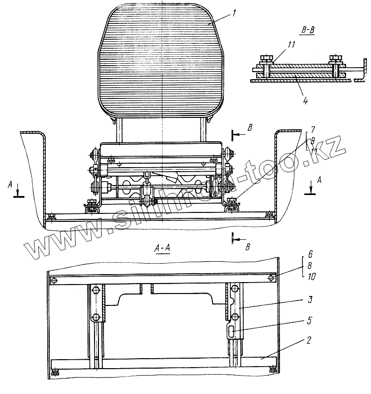 Каталог запасных частей к технике: ЮМЗ-6КЛ, (6КМ). Установка сиденья водителя
