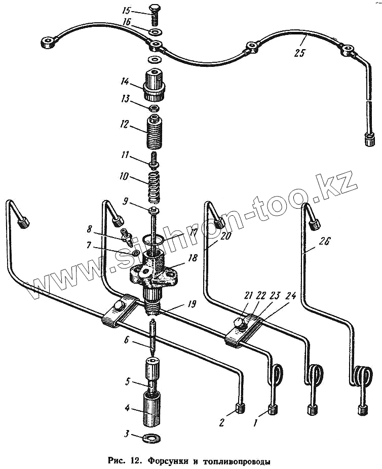 Каталог запасных частей к технике: ЮМЗ-6Л. Форсунки и топливопроводы