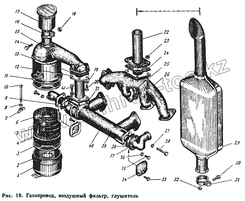 Каталог запасных частей к технике: ЮМЗ-6Л. Газопровод, воздушный фильтр, глушитель