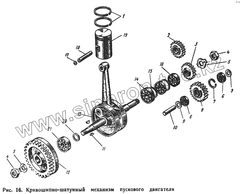 Каталог запасных частей к технике: ЮМЗ-6Л. Кривошипно-шатунный механизм пускового двигателя